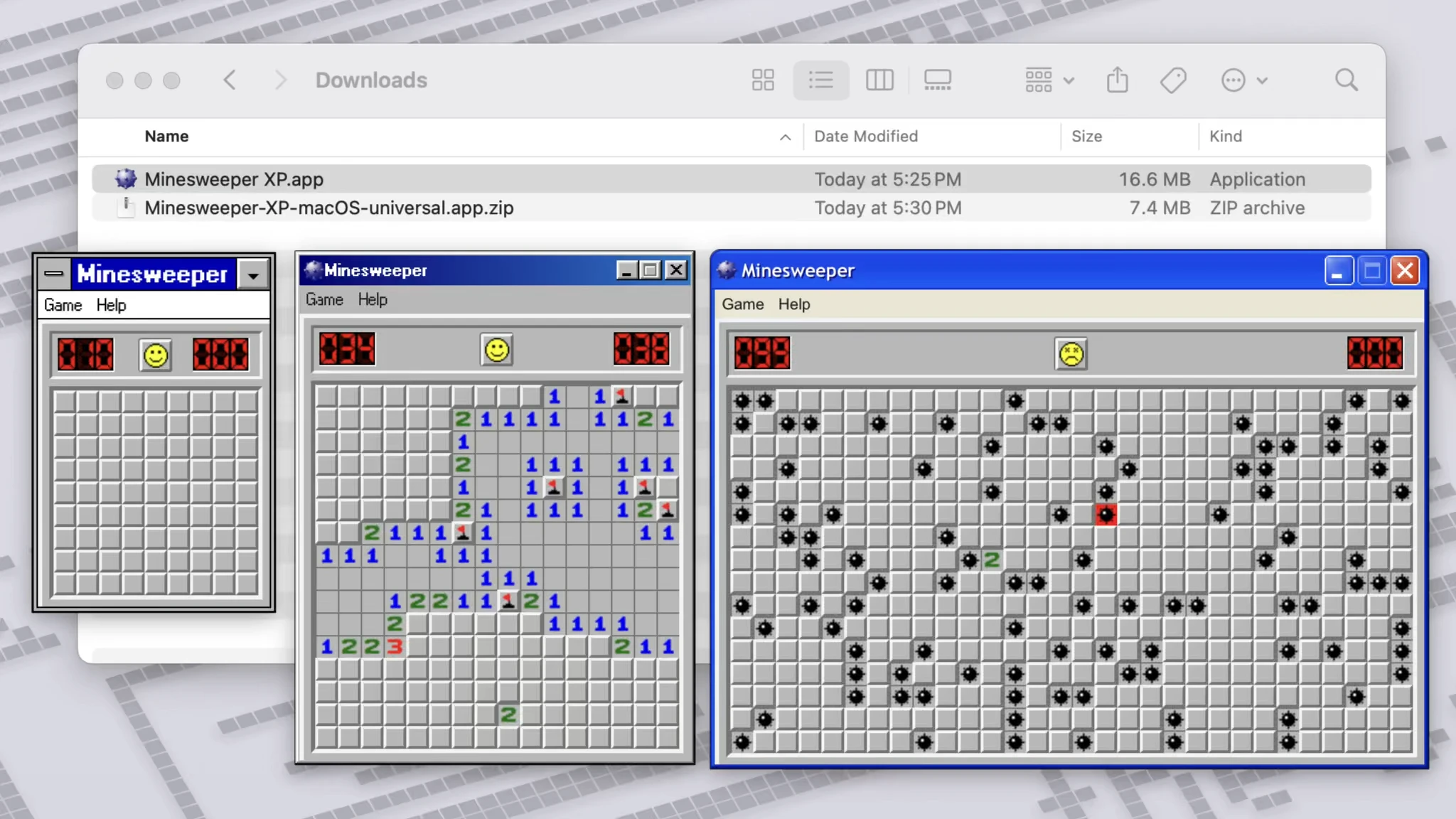 コミュニティ事例紹介Minesweeper XPバージョン: 次期バージョン 🚧Minesweeper XP Minesweeper-XP allows you to experience the classic Minesweeper XP (+ 98 and 3.1) on macOS, Windows, and Linux!